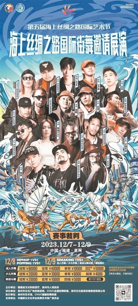 中国街舞近年来发展迅猛,众多舞者融合传统文化与街舞等流行文化,不仅传承了中华文化基因,也体现了当代中国青年奋发向上的精神风貌,此次“海上丝绸之路国际街舞邀请展演”,将有助于提升海上丝绸之路国际艺术节在年轻朋友中的影响力,助力世遗泉州“破圈”传播。
