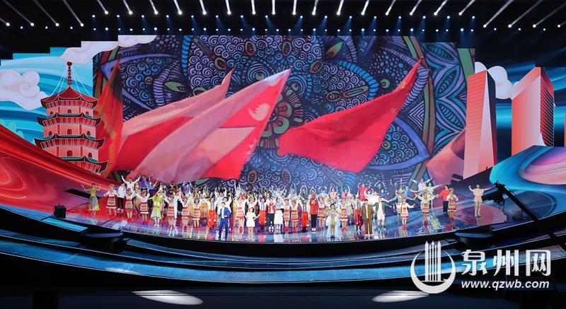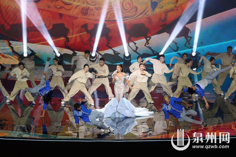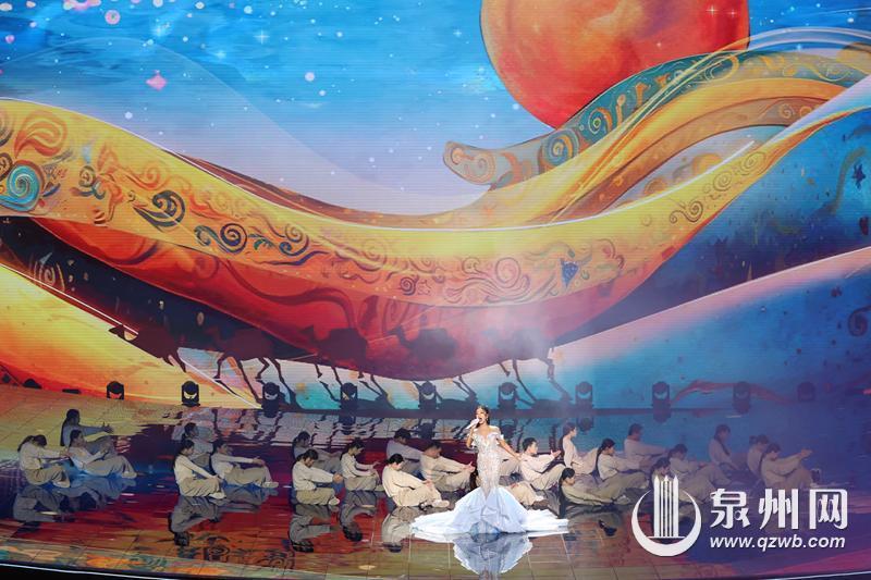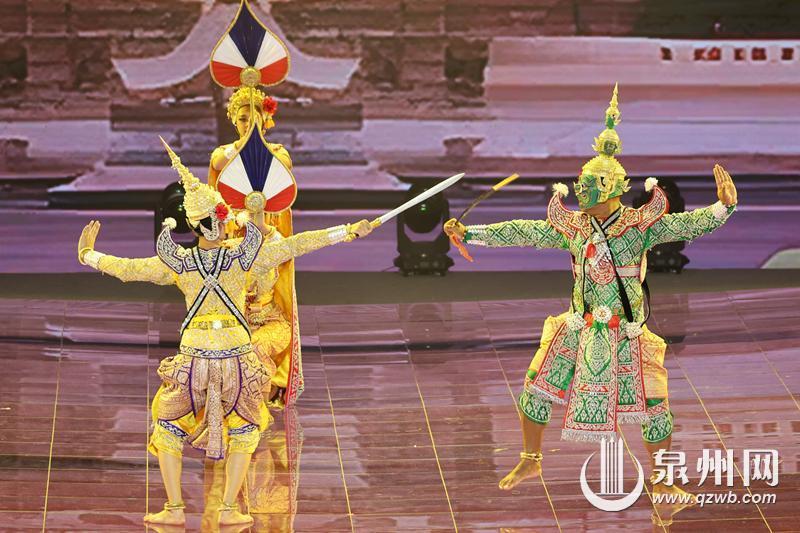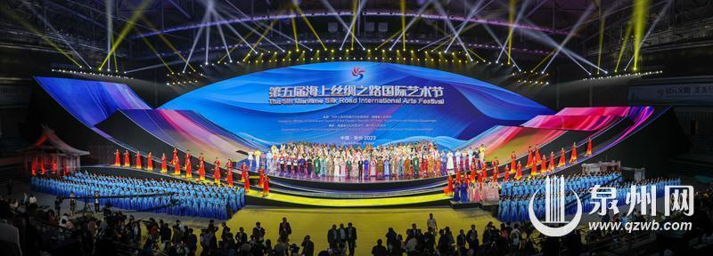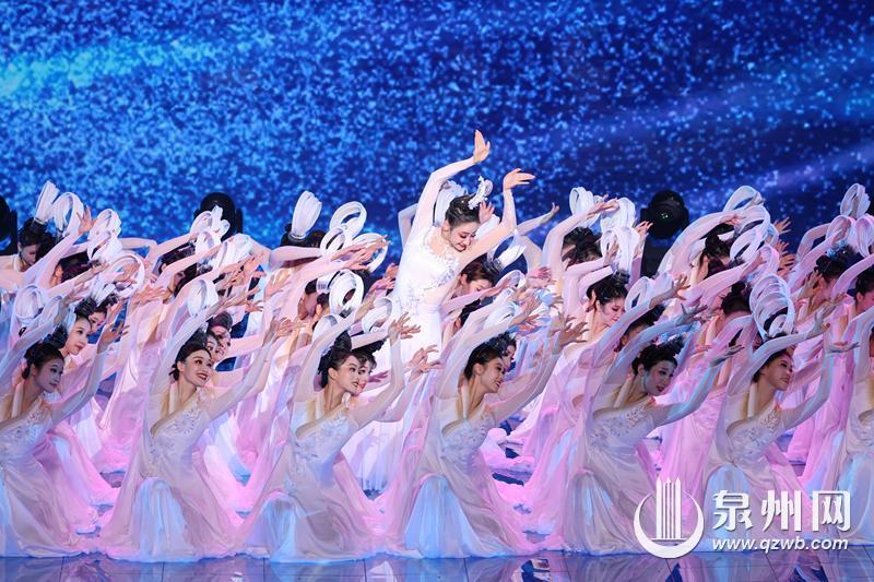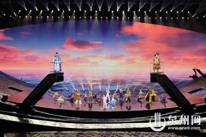 第五届海上丝绸之路国际艺术节12月8日至13日在泉州举办。今晚,开幕式演出《万里海丝路·千年刺桐情》在海峡体育中心精彩上演。(记者陈起拓/图)