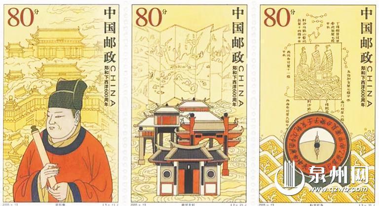 主要事迹 郑和年轻时从侍燕王朱棣,有智略,知兵习战,后在靖难之役中立功。永乐二年(1404年),为明成祖朱棣亲笔赐姓郑,提升其为内宫总太监。从明永乐三年(1405年)到宣德八年(1433年),郑和七次下西洋,《明史·郑和传》记载他出使过的国家或地区,共有36个,包括占城、爪哇、真腊、旧港、暹罗、古里、满剌加、渤泥、苏门答腊、黎代、那孤儿、沙里湾泥(今印度半岛南端)、不剌哇(今索马里境内)等。郑和下西洋与泉州关系密切。郑和下西洋的宝船中有福船型,这些船有的在泉州制造。泉州是宋元时期著名的世界大港,航海通商发达,有一批熟悉阿拉伯、南洋等地情况的人才,所以,郑和下西洋时曾在泉州停泊,等候风信,并招聘船舶技术人员。郑和下西洋时,沿途祭祀天妃妈祖,当时泉州天妃宫的重修,得益于郑和向朝廷的奏报。泉州灵山圣墓的《郑和行香碑》明确记载,郑和于永乐十五年(1417年)五月十六日来到灵山行香。郑和为伊斯兰教徒,到圣墓行香是可以理解的。另据传说,郑和第五次下西洋时,船队曾在泉州后渚港避风。惠安百崎郭仲远曾在渡口石亭摆设香案,率领族人恭迎郑和一行。后人称此亭为“接官亭”。