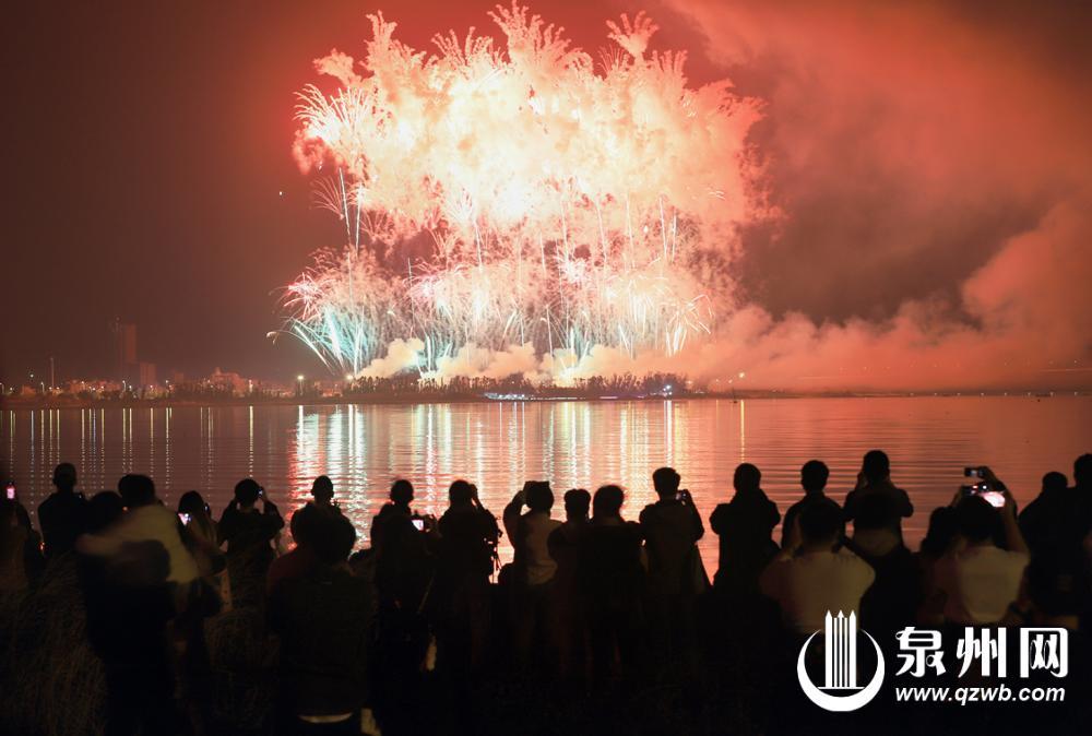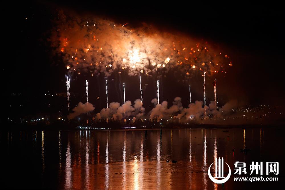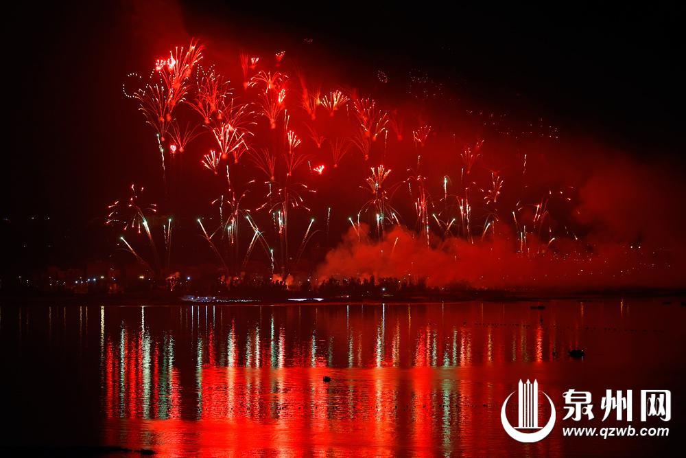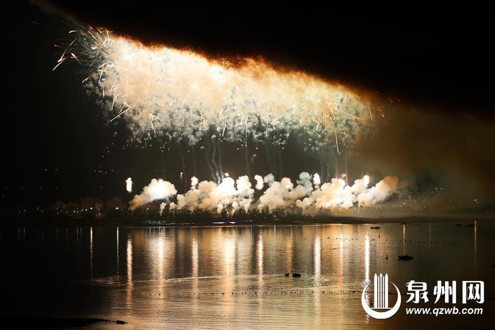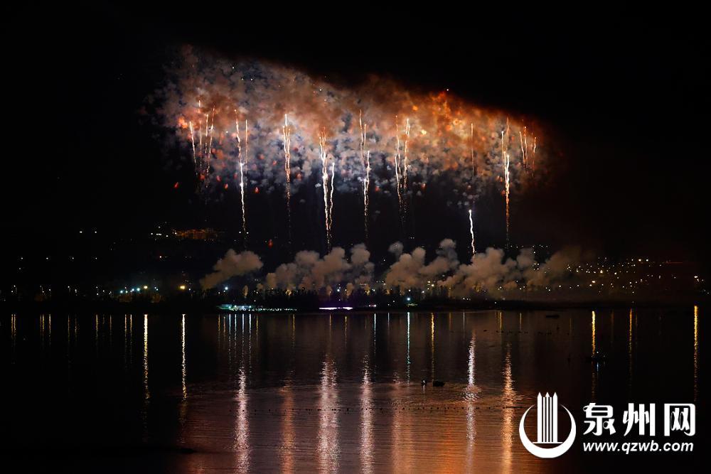 绚丽的烟花和江面的倒影相映成趣(陈晓东 摄)
