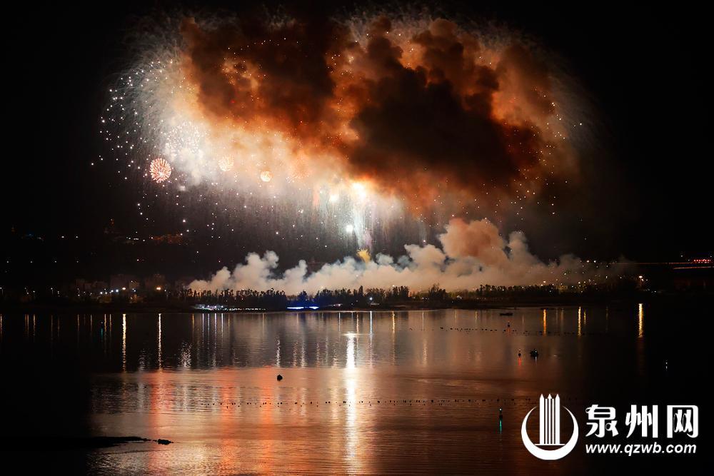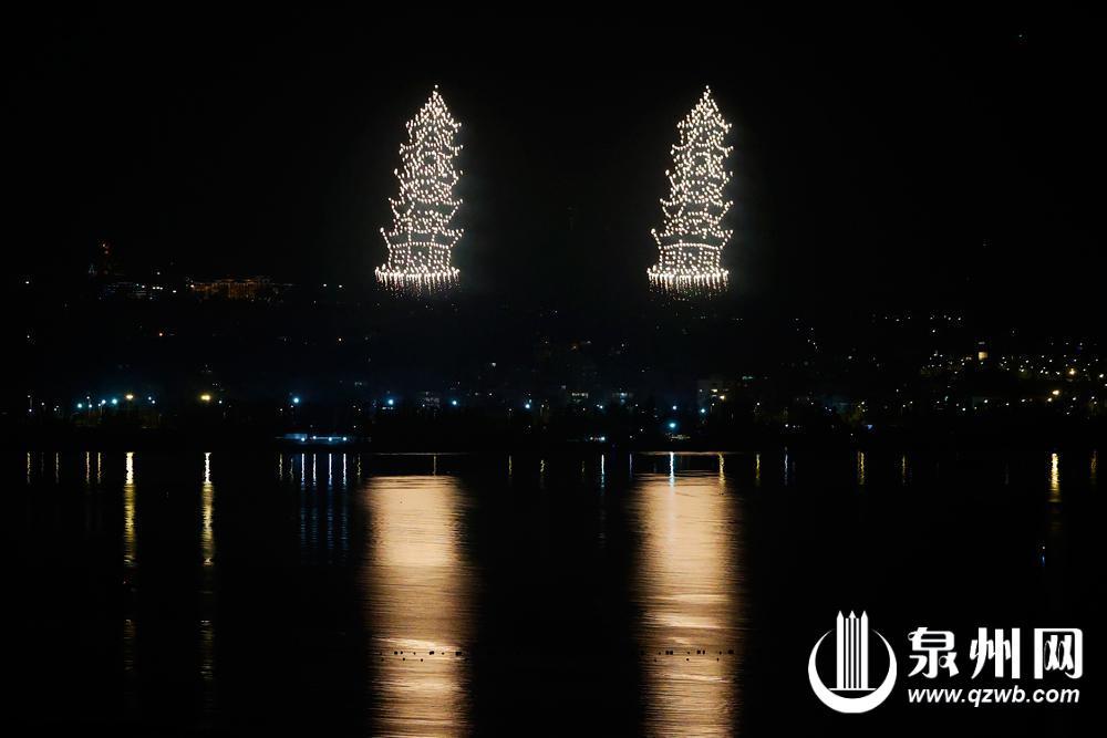 烟花炸出的“泉州东西双塔”(陈晓东 摄)