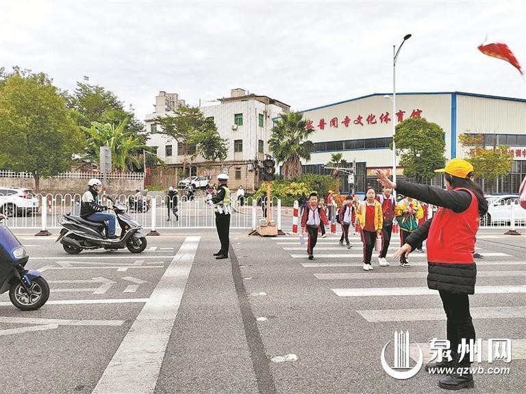 石狮市建立“学校护导岗”“文明秩序志愿者护学岗”两支队伍,破解学校路段拥堵现象。