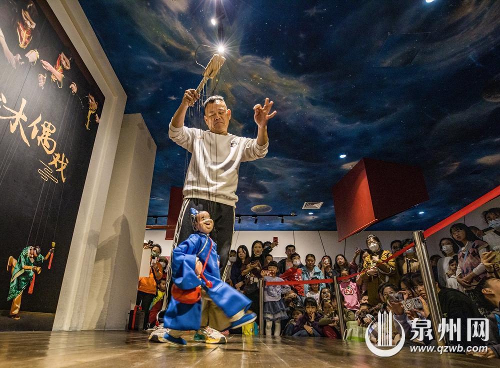 在泉州非遗馆举行的精彩的非遗木偶演出,氛围浓厚,游客赞叹不已。(黄万成 摄)