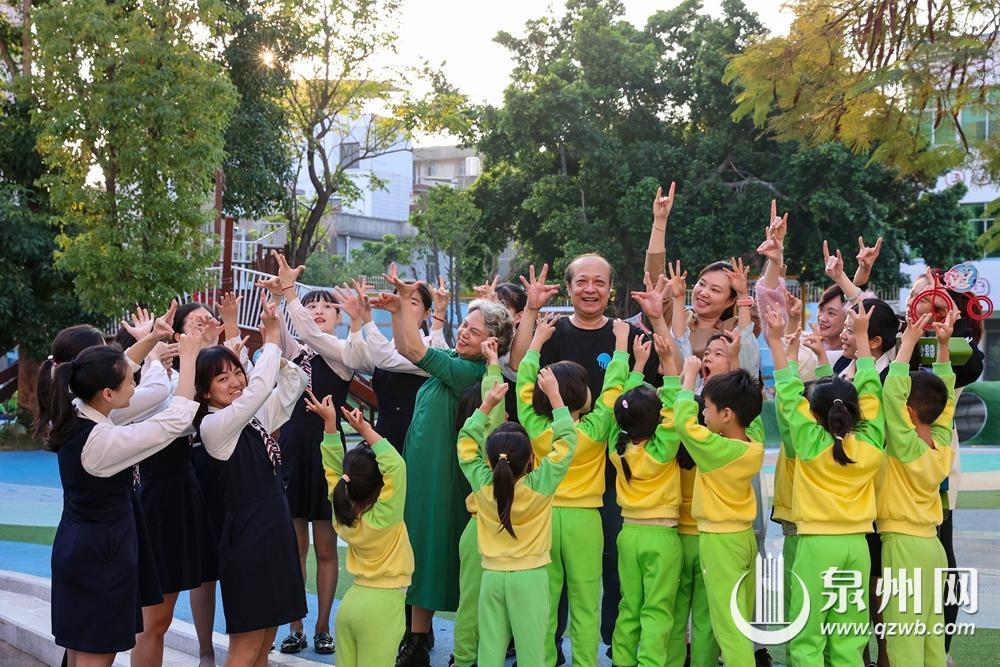 “我们希望通过这些靠手表演的民间艺术,让他们世代传承下去。”在泉州幼儿师范学校附属幼儿园,来自成都当代影偶文化有限公司沈晓在与孩子们“诗意手影”互动。(陈英杰 摄)