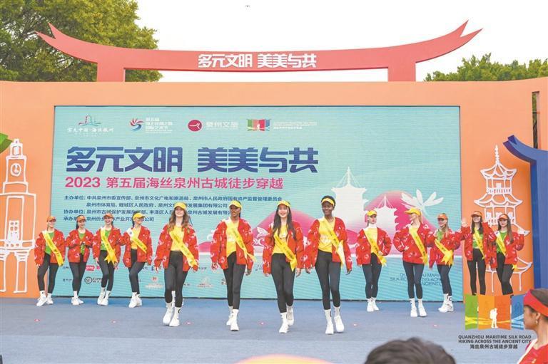 12月16日,2023第五届海丝泉州古城徒步穿越活动于泉州府文庙盛大举行。32位来自世界各地的世界旅游小姐总决赛参赛选手亮相府文庙,与徒步队伍热情互动,为古城徒步助力。随后,她们化身“世遗泉州全球体验官”,前往洛阳桥、安溪清水岩、南安英良石材自然历史博物馆、惠安崇武古城、晋江梧林传统村落等地,通过非遗文化体验、打卡泉州世遗点等活动,感受泉州风土人情,领略世遗之城的活力国潮与时尚魅力。