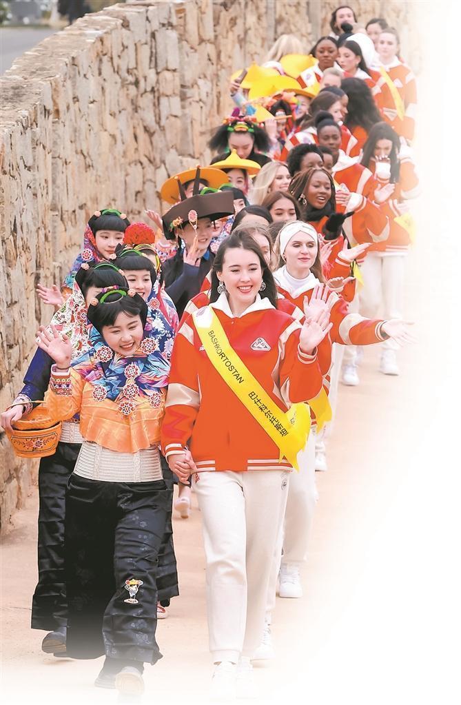 16日上午9时许,气温骤降、小雨淅沥。32位世界旅游小姐总决赛参赛选手亮相泉州府文庙,参与古城徒步出发仪式,与徒步队伍互动。她们穿着四种颜色的、融入世遗泉州和海丝文化的“古城徒步文化衫”在T台走秀,呈现各具特色的美丽。出发仪式后,世界旅游小姐们坐上定制款“小白”车,打卡多个“世遗国潮”主题点位,在天后宫“非遗戏梦”舞台与徒步队伍欢快互动,在泉酒刺桐味观看市井刺桐味长卷,品尝闽南古早味。“我从未见过这样的戏剧表演,回到德国我会非常骄傲地将拍到的视频展示给大家,很高兴能有机会学习这些优秀的文化。”来自德国的Taya表示,这里的食物、文化、风景都是她之前没有体验过的,一路上她热衷于用手机记录泉州非遗文化,想要将这些美好分享给朋友们。