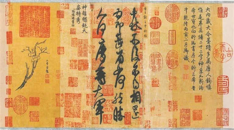 江湖人称“盖章狂魔”的乾隆最喜欢在画上狂盖章,王羲之的《快雪时晴帖》被他密密麻麻盖了几十个章,他还抑制不住内心的喜悦,写了个“神”字在中间;王献之的《中秋帖》,一共才写了30多个字,任性的乾隆就盖了80多个章。