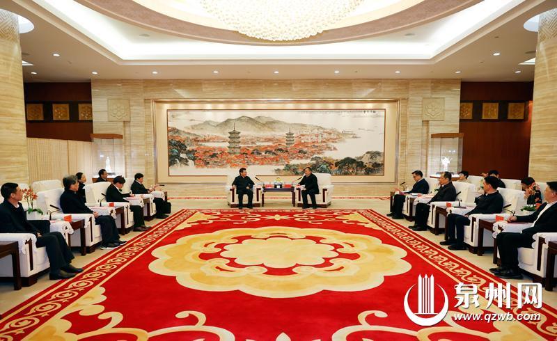 泉州网12月22日讯(记者谢曦/文 陈晓东/图)12月21日,泉州市人民政府与福建农林大学签订战略合作框架协议。市委书记张毅恭与福建农林大学党委书记王建南、校长兰思仁一行座谈交流,并共同见证签约。