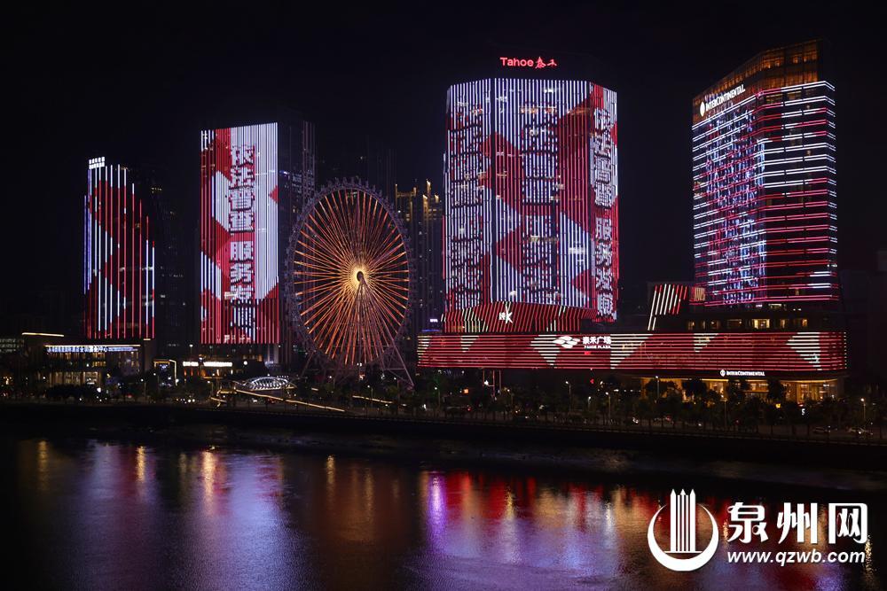 第五次全国经济普查是一项重大国情国力调查。日前,泉州中央商务区、东海泰禾广场等区域地标建筑集体亮灯,打出“第五次全国经济普查”“依法普查 服务发展”等字样,造浓全社会积极参与普查的良好氛围。本次经普主题的灯光秀时间为每周五18时—22时,将持续至明年4月底。2024年1月1日至4月30日,泉州市1.3万名普查指导员和普查员将手持电子终端,对全市普查对象开展入户登记,现场采集调查表数据。(吴嘉晓 蔡紫旻 丁庆裕 文/图)