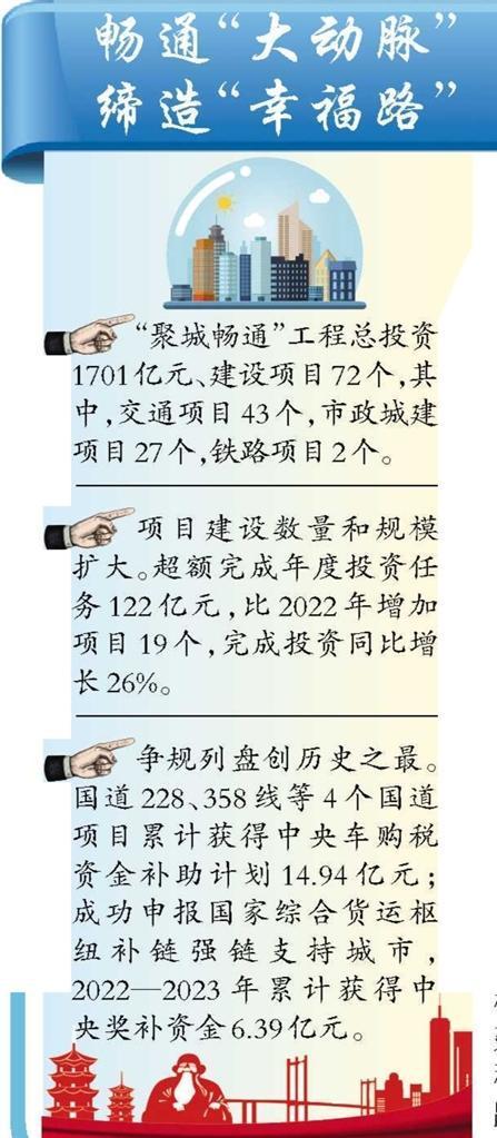 跨江通道不断加密。泉州大桥拓改工程完工通车;金屿、百崎、金鲤大桥等3座跨江通道开工,高标准配套慢行系统,设置独立的人行道和非机动车道;晋江隧道计划2024年年内开工。