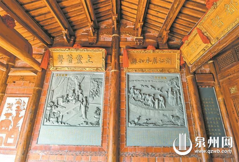 龟湖蔡氏祖祠西壁《龟湖甘泉》《塘规利农》雕刻