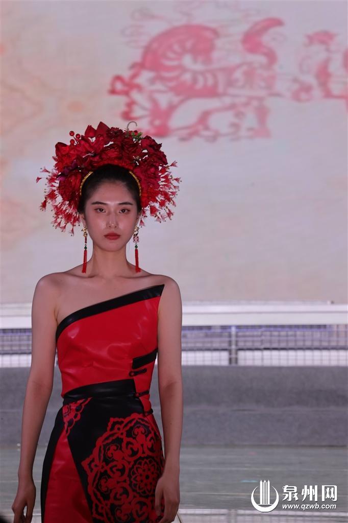 在非遗时装秀《妈祖》《中国刻纸系列》展演上,伴随着音乐响起,模特们依次登场,身姿款款,优雅地展示着身上的服装,以新潮方式呈现“行走”的非遗艺术。据介绍,此次时装秀由本土设计师玫玫与国家级非遗“李尧宝刻纸”代表性传承人黄丽凤跨界设计,采用红黑配色,将泉州刻纸等文化遗产项目与服装产业相融合,融入燕尾脊、刺桐花、簪花围、花灯等泉州元素,打造时尚文创,彰显文化遗产魅力。