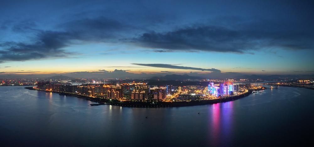 夜幕降临,华灯初上,放眼泉州“两江一湾”岸线,呈现烟火泉州的璀璨画卷。(张九强/摄)