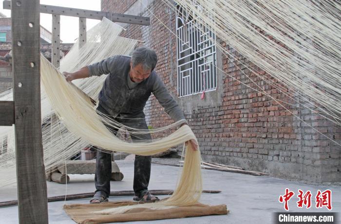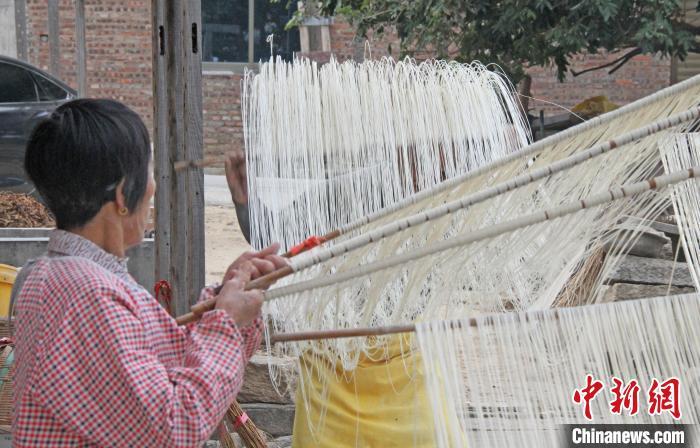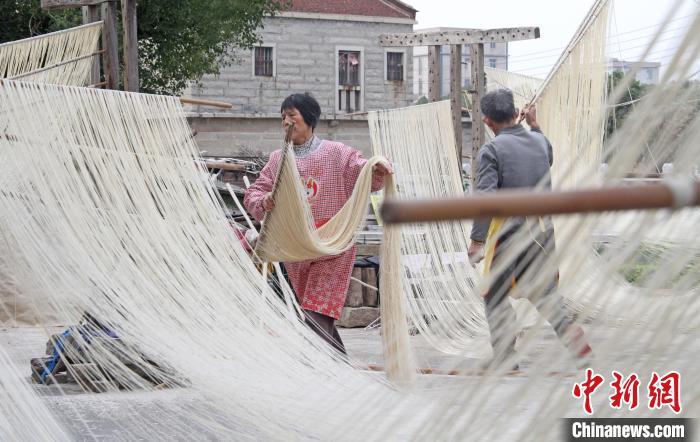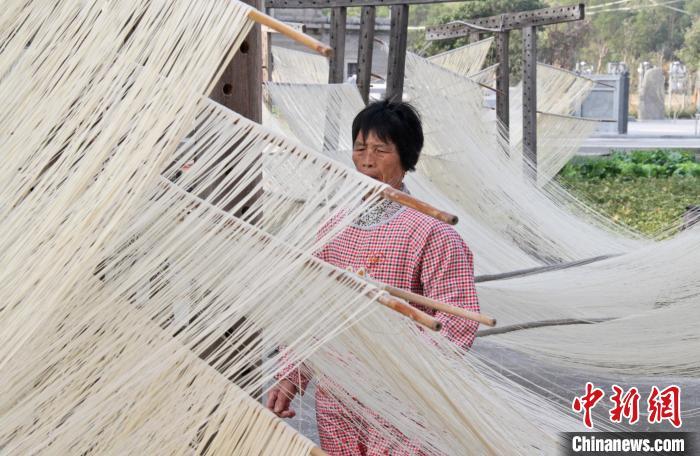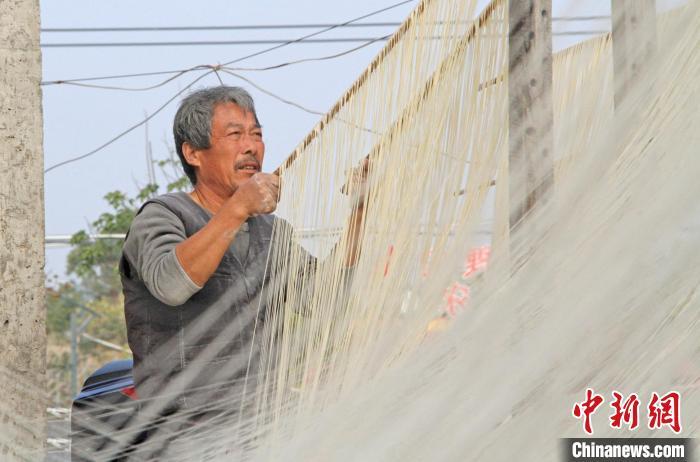 随着春节不断临近,福建省泉州市泉港区凤翔村的寿面加工制作专业合作社内,社员们正抢抓晴好天气,拉面、晒面,为年关寿面销售旺季做足准备。每逢喜事、春节,寿面是当地民众必不可少的主食之一。作为当地的特色农产品,凤翔村加工制作、销售寿面的历史已有300多年。
