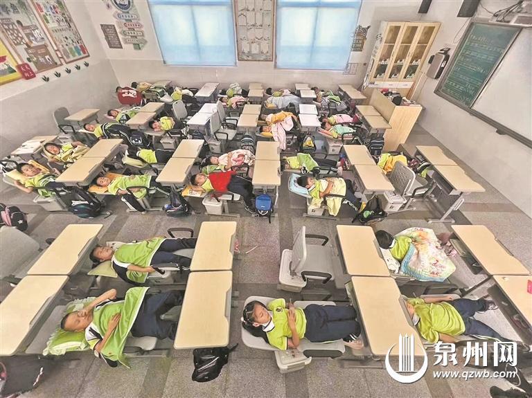 “一放二坐三靠四盖……”每天午间,丰泽区东星实验小学的老师喊着口令,引导学生将课桌椅从坐式调整成躺式,实现从“趴睡”变“躺睡”。据了解,该校有2000多名学生,在推行课后延时服务后,在校午休就餐的学生达到85%。从秋季学年开始,学校在一、二年级投用可躺平午休课桌椅。购置午休课桌椅的资金一部分由扩班经费支付,一部分靠爱心企业和社区捐资。