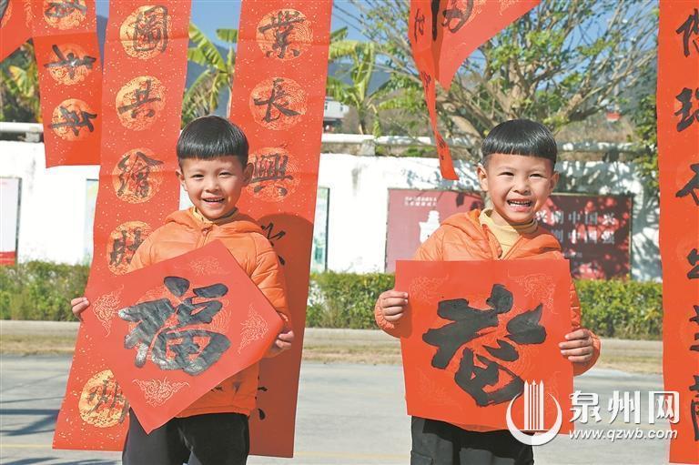 双胞胎孩子喜领“福”字