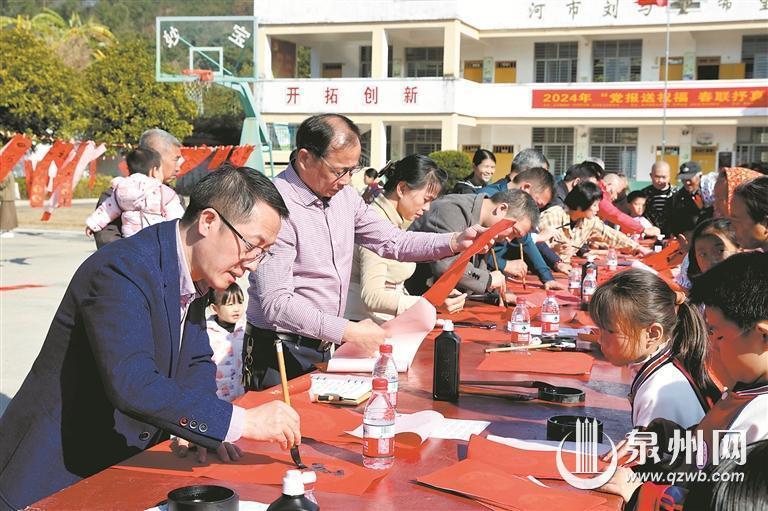 “听说这里有党报送春联活动,我就马上从河市镇上赶过来了。”今年76岁的连奶奶说,她来请书法家帮忙写几副春联贴在自家的古大厝,“看着就很喜庆”。