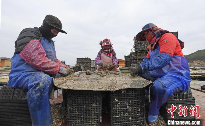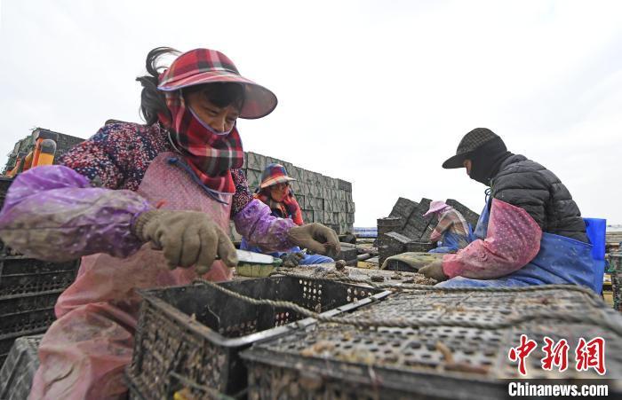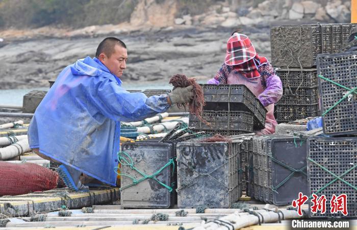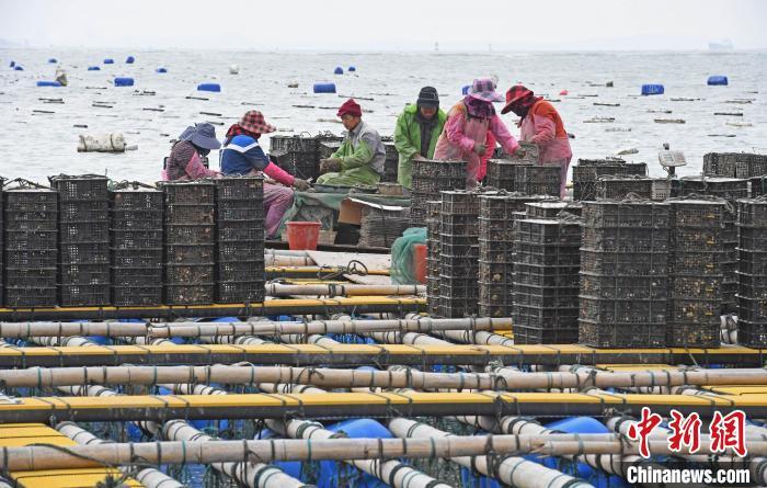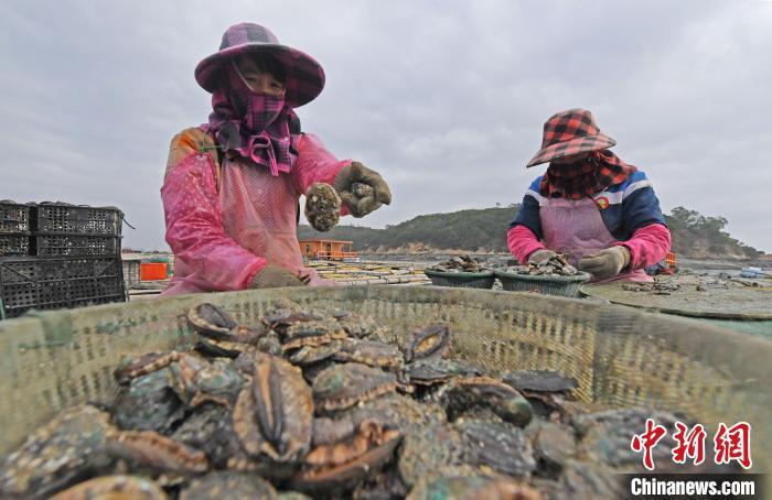 养殖工人正在收集鲍鱼准备分苗。林弘梫 摄