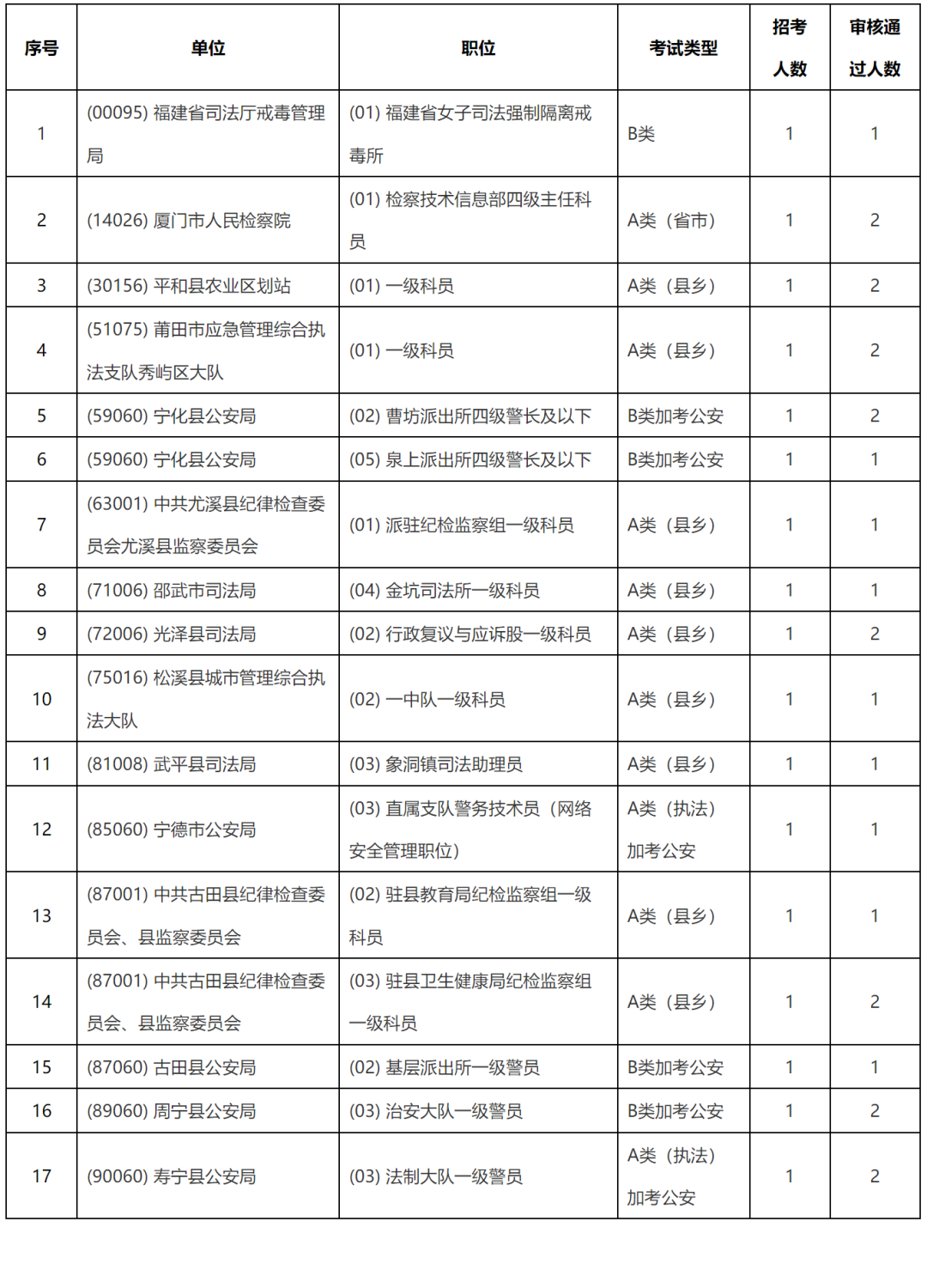 二、17个职位的审核通过人数不足3人,不予开考,减少录用计划(招考人数)17人(详见附表2)。