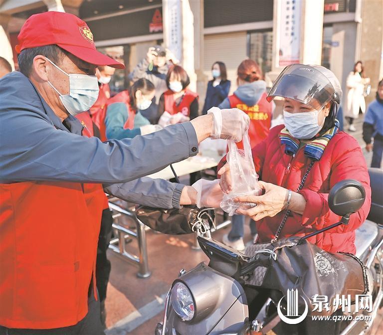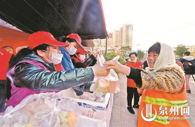 泉港区举行暖心奉粥公益活动,为环卫工、老年人等送祝福。 (陈嘉纬 陈晓东 摄)