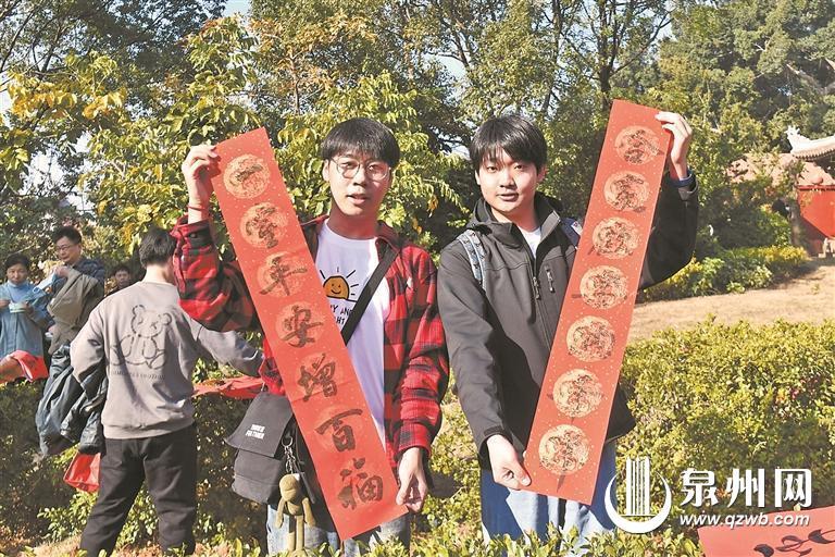“不同于北京的庙会,泉州的腊八节特别暖,天气暖、人暖、粥也暖。”杨颖斐和杜家澍来自北京,是首都师范大学的学生,当天特意到现场体验泉州的腊八节氛围。近年来,泉州频频亮相央视,在各大短视频平台也一再出圈,让两人对这座充满烟火气的城市向往已久。近日,应泉州籍同学沈顺的邀请,两人当即决定兑现愿望。两天来,他们已经走访了西街、开元寺等地方,接下来想去看看海,爬爬清源山,慢慢享受古城的慢生活。“泉州是座充满历史底蕴的城市,很多历史建筑保存得很好。”在他们看来,泉州是个富有人文气息的城市,独特的闽南文化氛围在本次活动中得到充分的体现。“走在人群中,一下子拉近了我们跟泉州的距离。泉州人对腊八节日及庙会文化充满了热情,现场表演的泉州武术富有力量感,更是让人眼前一亮。”杜家澍表示。