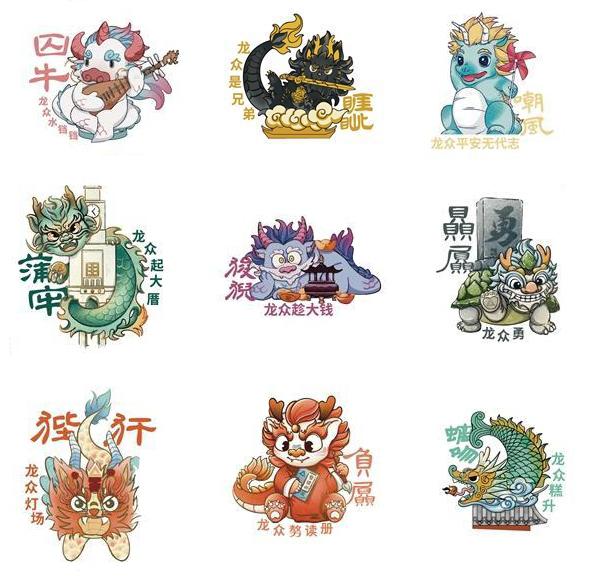 据介绍,为迎接龙年春节,在泉州市文旅局指导下,鲤城区政府、鲤城区文旅局与匹克集团、鲤物文创合作共创2024龙年IP艺术装置项目,定制“十龙九子”艺术装置。“十龙九子”总共有11条龙,包括“龙鲤鲤”和“龙众九子”,“龙鲤鲤”为一大一小两条青龙,“龙众九子”则包括蒲牢、囚牛、赑屃(bì xì)、狻猊(suān ní)、负屃(fù xì)、嘲风、螭吻(chī wěn)、睚眦(yá zì)、狴犴(bì àn)。