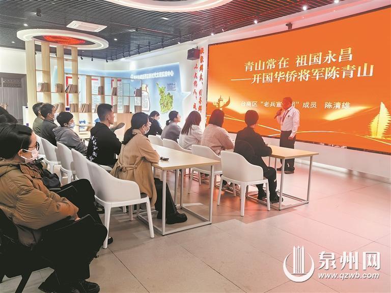 “振兴琼州壮社稷,救国兴邦为华夏。启后承前新秀继,华侨将领数精英。”台商投资区“老兵宣讲团”成员陈清雄以《青山常在 祖国永昌——开国华侨将军陈青山》为题,讲述了开国华侨将军陈青山身系家国、戎马一生的壮丽凯歌。今年党龄50年、71岁的老兵陈清雄,将文字作品转化为富有感染力的有声语言,在他动情的讲述下,陈青山将军仿佛穿越时空向我们走来。