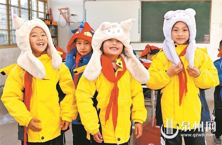 穿上漂亮又保暖的新衣物,孩子们乐开花。