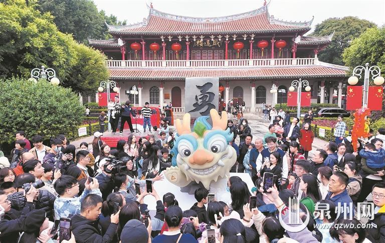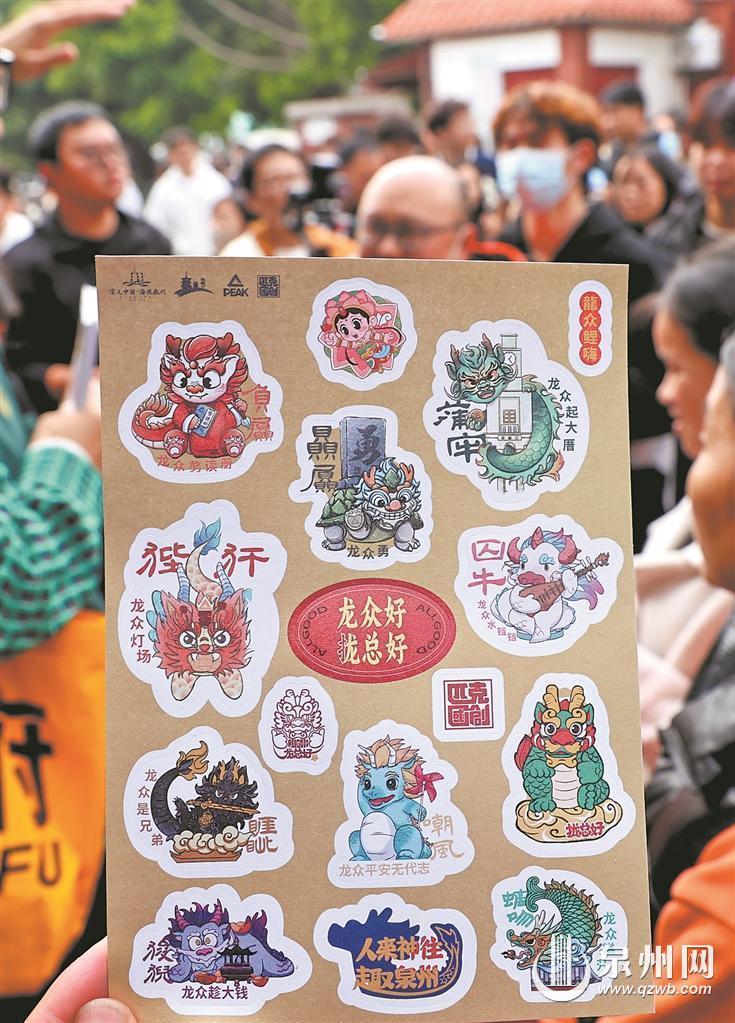 游客们还得到了“十龙九子”贴纸。鲤城区文旅局副局长林菲介绍,“十龙九子”其他装置将陆续在古城世遗景点、街巷、文创园区亮相。传统非遗大型青龙装置“龙鲤鲤”将于2月初压轴登场,给大家送上“拢总好”的美好祝福。