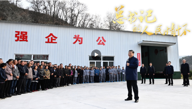 党的二十大闭幕不到一周,习近平总书记走进陕西延安市安塞区高桥镇南沟村果园。红苹果压弯枝头,习近平总书记同老乡们亲切交流。