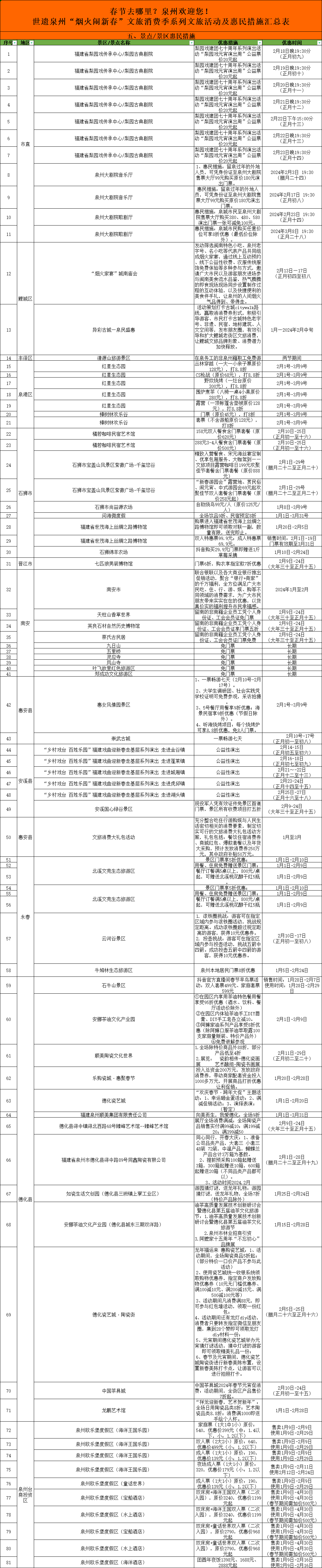 泉州网1月25日讯(融媒体记者 王金植 通讯员 曾世彬)昨日,记者从市文旅局获悉,泉州突出本地春节、元宵特有的民俗、非遗等传统特色和烟火气息,按“好玩、好吃、好看、好精彩”进行延展提升策划,推出“寻龙记”+世遗、非遗、美食、演艺、明星、工业旅游六大板块上1000场系列文旅主题活动、优惠促销措施,欢迎国内外游客来世遗泉州过春节闹元宵。