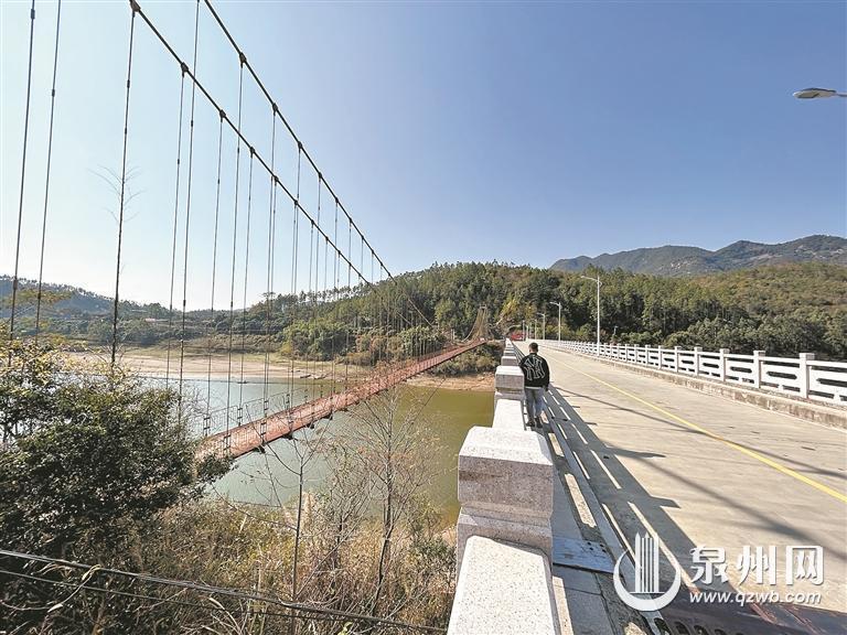 九都镇县道325线是泉州级乡村振兴示范项目中的精品样板,也是南安建设“四好农村路”的典范。当日,记者驱车行驶在九都镇县道325线上,一路蜿蜒又宽敞平坦,一侧五台山山青树茂,另一侧山美水库水波粼粼,山水交融呈现优美生态画卷。在和安村,一座崭新的跨库大桥与一座铁锈斑斑的铁索桥并列横跨于山美水库之上,形成一道独具特色的风景线。