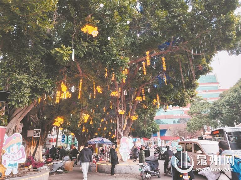 在洛江区双阳法治广场,树木已换上“红装”,缠绕的灯带、悬挂的灯笼,格外耀眼。据介绍,此次悬挂的灯笼和灯饰设计造型各异。装扮过程中,工作人员根据树木的高度、大小、形态特征等进行布置,营造欢乐喜庆、文明祥和的节日氛围。