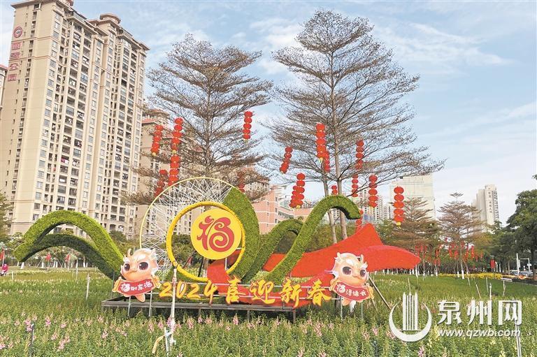 据介绍,丰泽区在丰泽街、刺桐路、江滨路、津淮街和丰海路两旁绿化带树木上悬挂五连串灯串。在东海大街人行天桥、坪山路、江滨路人行天桥、东海大街十字路口树木密集位置、真武庙靠通港西街路段景观树、蟳埔民俗文化村路口及周边等地悬挂传统大红灯笼。在妙云街两旁树木上悬挂彩灯带;真武庙靠丰海路路段中间绿化带树木上悬挂彩灯带。以“这YOUNG的丰泽,这YOUNG的龙年”为主题,结合簪花围等丰泽元素,在老君大道、江滨路、妙云街设置主题灯杆旗。应用“福瑞龙”“福如泉涌 福泽绵长”等元素,改造提升原有的10座福文化景观小品。