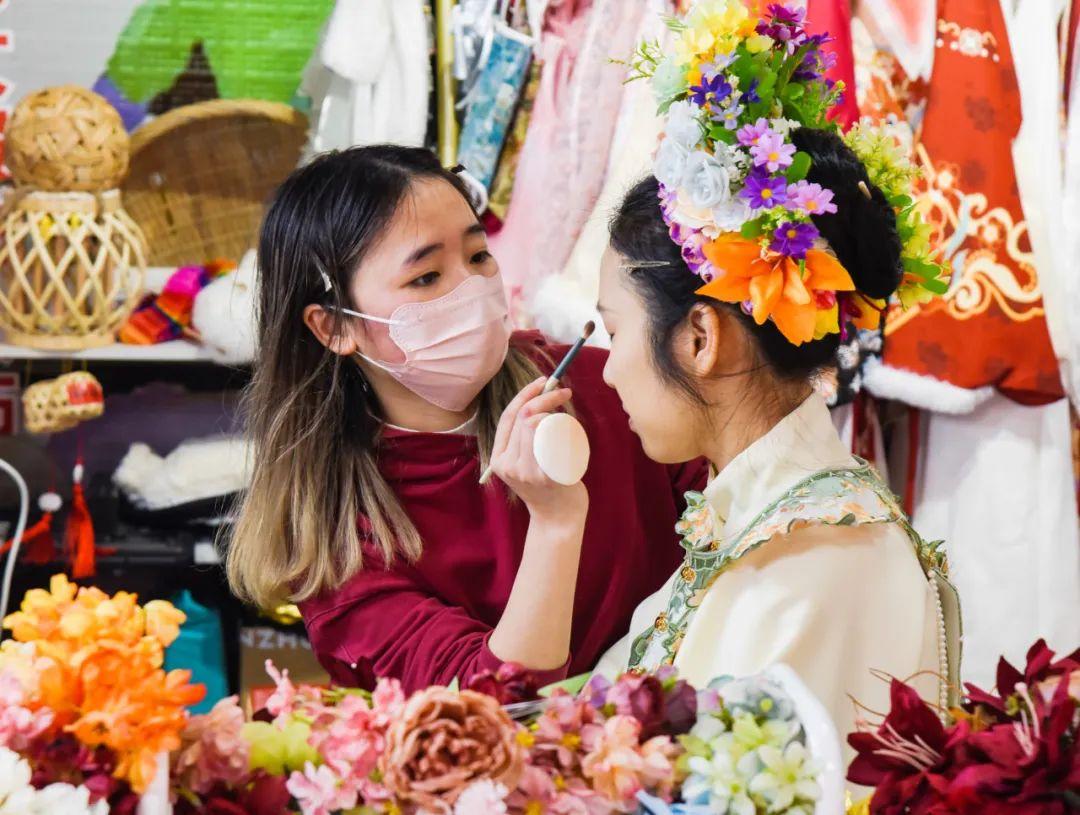 簪花店为游客精心打扮妆容