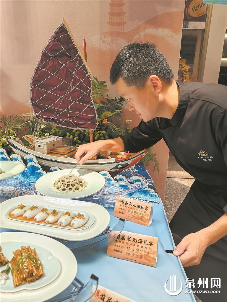 “‘宋元海丝宴’并不仅仅是对林洪的记载进行复刻,而是在食材、技法、呈现上创新地‘再现’美食,同时将蕴藏在美食中的地域特色和文化内涵传递给食客。”青年烹饪艺术家、闽菜推广大使、泉州市餐饮烹饪行业协会常务副会长陈亚燕向记者介绍道。以菜品“马鲛鱼羹”为例,除了选用福建常见的经济鱼类马鲛鱼,还加入了陈振龙从吕宋岛带回的番薯制成的番薯粉。
