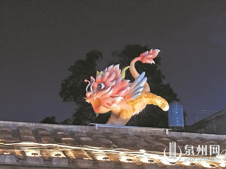 “这条龙很特别,有翅膀,会飞,都飞到屋顶上了。”市民张先生说,“狴犴”很漂亮,亮灯之后,浑身发光发亮,在屋顶上,像是一个漂亮的天使。“狴犴”是维护光明正义的象征,而三朝巷是古城廉洁文化的一个地标,两者结合得好。