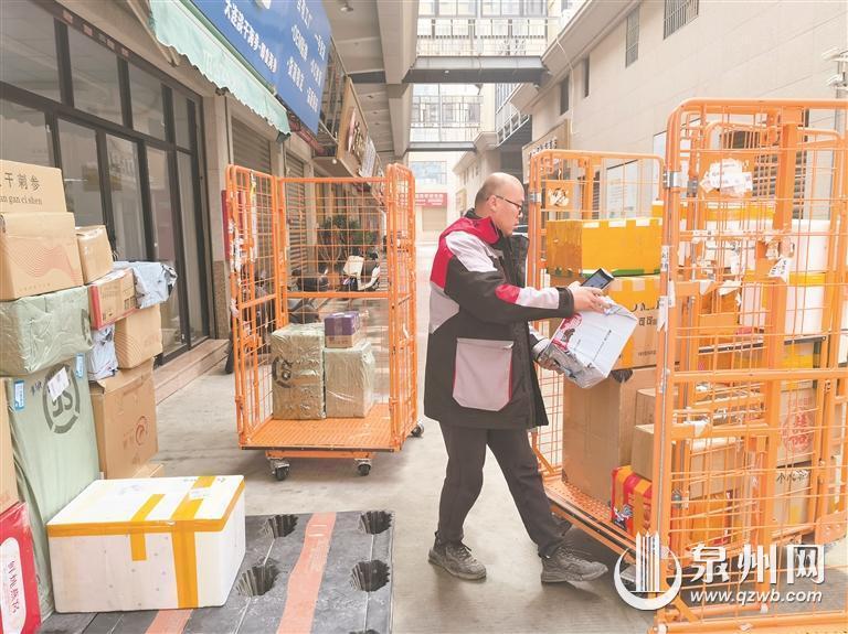 “近期快递收件量较平日有所增长,我平时一天收件量在100至150件,如今一天收件量能达到250件。”快递小哥周荣芳是晋江内坑人,从事快递行业已有3年多。他告诉记者,由于该网点周边是滋补品批发市场,市场内有近300家店铺。每年春节前夕,滋补产品的寄递业务量会明显增多,目前已经进入了高峰期。“我一般早上7点多就会到达网点,遇到寄递高峰期便会一直忙到隔日凌晨两三点,虽然工作辛苦,但能及时把年货送到客户手中,我心里也很有成就感。”