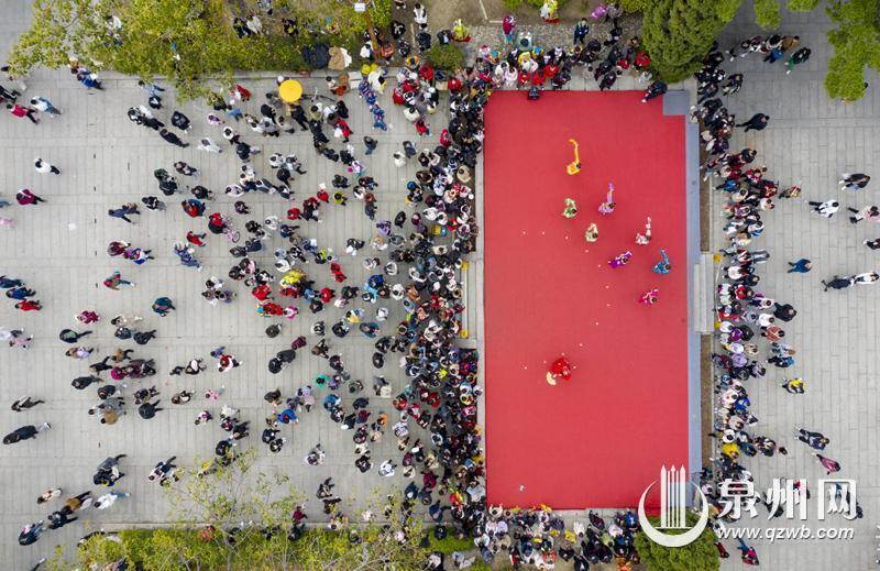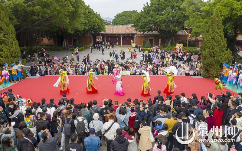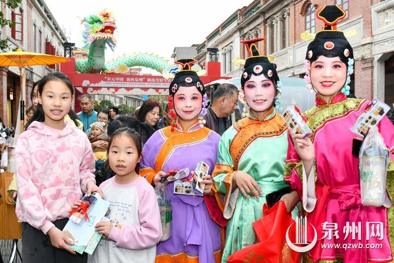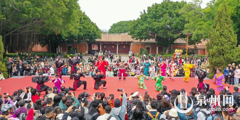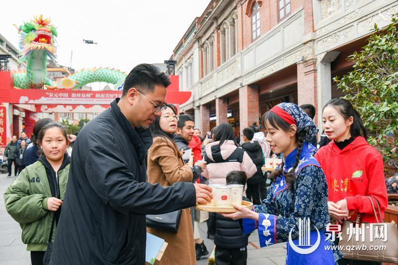 泉州网2月6日讯(记者 陈英杰 艾罗斯/摄)2月6日下午,安溪县文体旅局带队在泉州府文庙及中山路举行非遗快闪活动,旨在通过文化快闪和市民游客互动来展示安溪文化,并融入泉州全域文旅发展大格局,用实践来响应“消费集聚区”“古城大秀场”“‘泉州城市巡游活动”项目建设。此次活动不仅带来了安溪非遗代表高甲戏经典剧目、铁观音男团制茶舞蹈展示、茶乡舞蹈等,现场演绎了一场文化的盛宴。同时还带来了安溪铁观音、竹编文创、茶点伴手礼等特色免费赠予现场观众。来自武汉的游客黄先生感叹:铁观音很香,节目还想再看一次。
