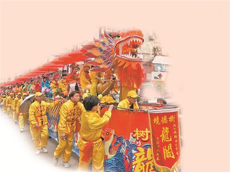 泉州网2月8日讯(融媒体记者 杨泳红 文/图)南安市洪濑镇区按宫庙所在划分为四境,分别为蓬莱境、树德境、福庆境、古廍(bù)境。每年农历二月,镇区四境举行天香踩街活动,热闹非凡。其中最负盛名的是洪濑龙阁,又名洪濑蜈蚣阁,流传至今已数百年,2016年还亮相猴年春晚泉州分会场,引发全国瞩目。今年春节,树德境树德寺的龙阁将亮相泉州民俗踩街,与市民游客共庆佳节。