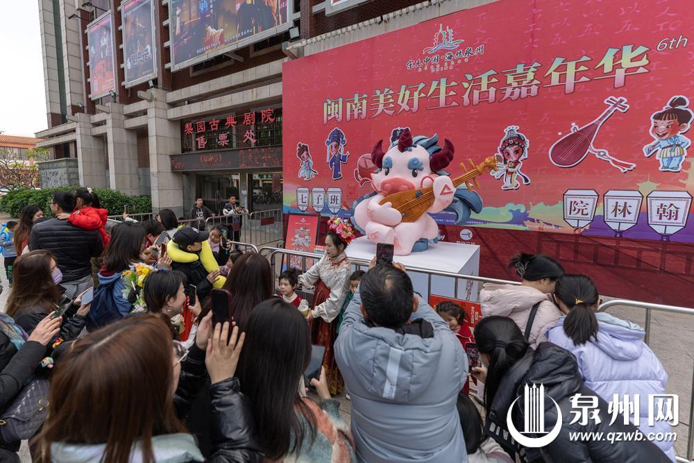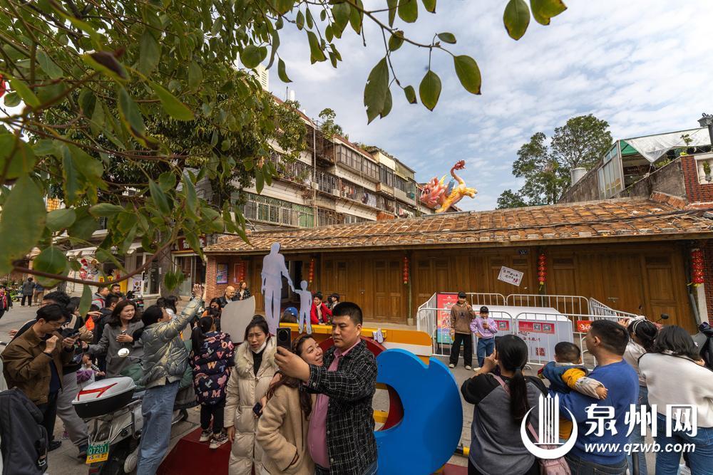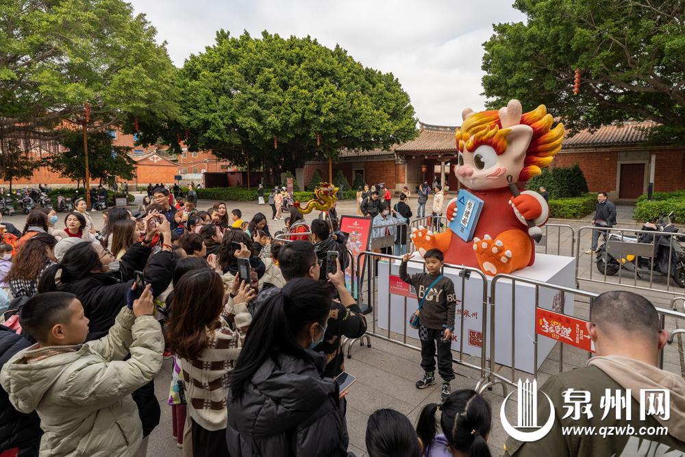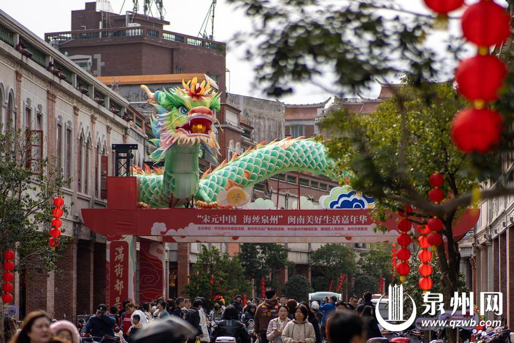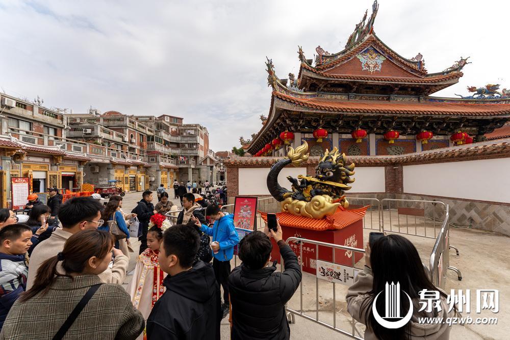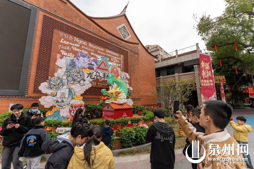 新春佳节来临之际,泉州古城喜气洋洋。布置在不同点位的大小青龙和“龙众九子”吸引市民、游客逐一打卡拍摄,古城出现万众寻“龙”的热闹场面。(融媒体记者陈起拓 摄)