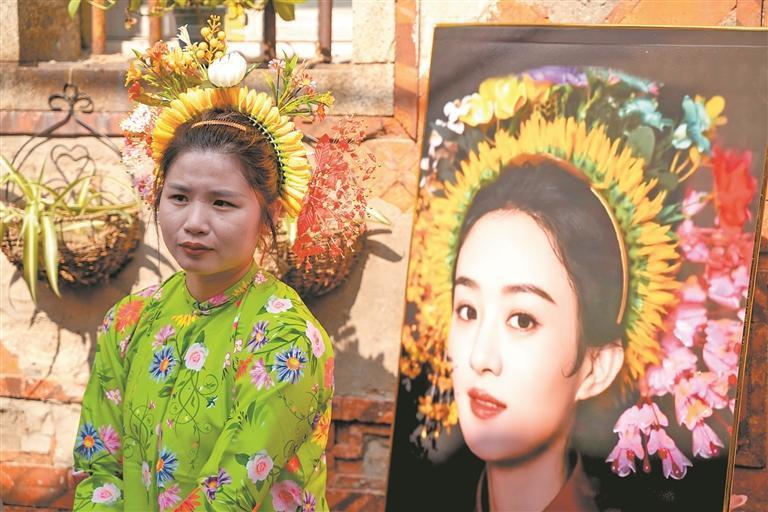 到蟳埔村拍一张属于自己的簪花围照片,是很多游客的心愿。 (李雅真 摄)