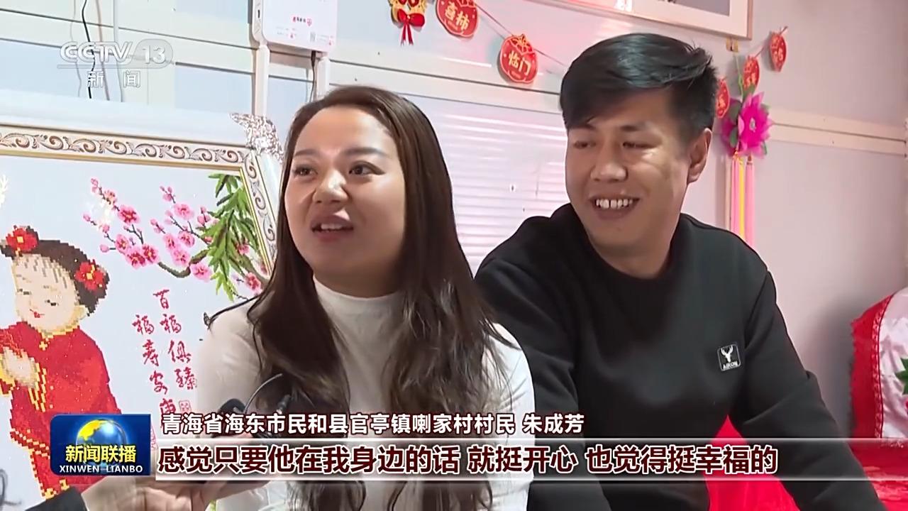 青海省海东市民和县官亭镇喇家村村民 朱成芳:感觉只要他在我身边的话,就挺开心,也觉得挺幸福的。在新的一年里面希望赶紧建好自己的新家园。