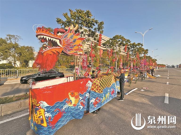 泉州网2月15日讯(融媒体记者 林志安 王耿华 陈淑华 通讯员 柯馨 肖江平 陈治楠 文/图)令人期待的“龙腾东海·福满泉州”民俗踩街活动将于今日下午举行。昨日,记者前往踩街举办地点泉州东海中央商务区,探营活动准备工作。