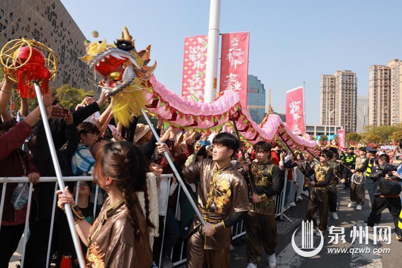 泉州网2月15日讯(记者 郑银杰/摄)2月15日下午,泉州市2024年“龙腾东海·福满泉州”民俗踩街在泉州东海中央商务区热闹举行,记者在现场采撷部分场景提供给读者欣赏。