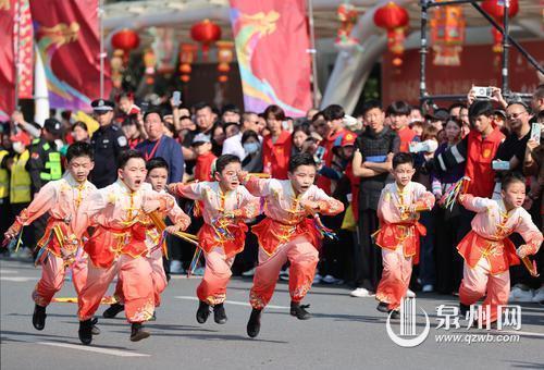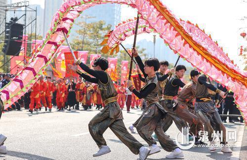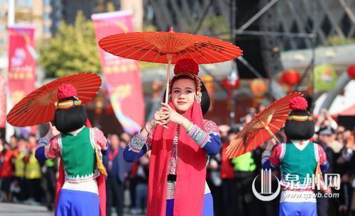 30个方阵、30项非遗项目,1500多名演职人员走上街头,或行进间表演、或定点展演,有绚丽多彩的“泉州龙龙”彩车,有独具特色的拍胸舞、火鼎公婆等民间艺术,还融入了新潮时尚的国潮元素,尽显历史文化名城泉州传统民俗民间艺术原味与特色,为市民游客奉上一场文化的饕餮盛宴。
