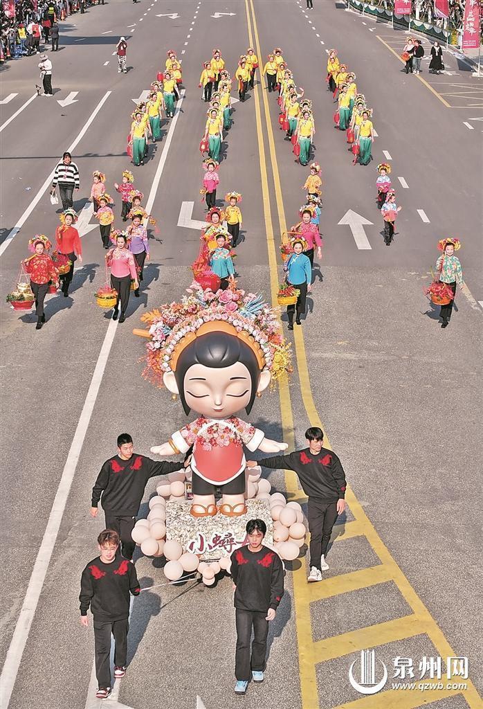 泉州网2月16日讯(融媒体记者 王金植 廖培煌 杜婉琼 杨泳红 张晓玲 庄鹏佳/文 陈英杰 陈起拓 林劲峰 陈小阳 张九强 郑银杰 胡彦明/图)龙腾东海闹新春,千年海丝福满城。昨日,“龙腾东海·福满泉州”民俗踩街活动燃爆全城,锣鼓喧天,万人空巷,现场被热情的气氛和浓浓的年味包围。彩车,舞龙,传统民间歌舞表演,独具特色的拍胸舞、火鼎公婆,以及古老百戏傩舞、刣狮、水车阁等精彩纷呈,古韵与新潮在这里融合,文化与烟火在这里共生。据市文旅局统计,截至当天下午5时,线下参与民俗踩街活动的市民游客超30万人次,线上新媒体曝光量已超亿次。