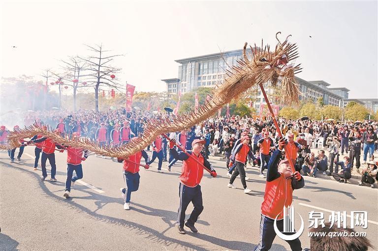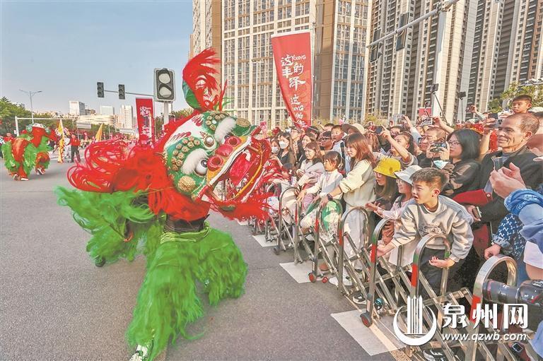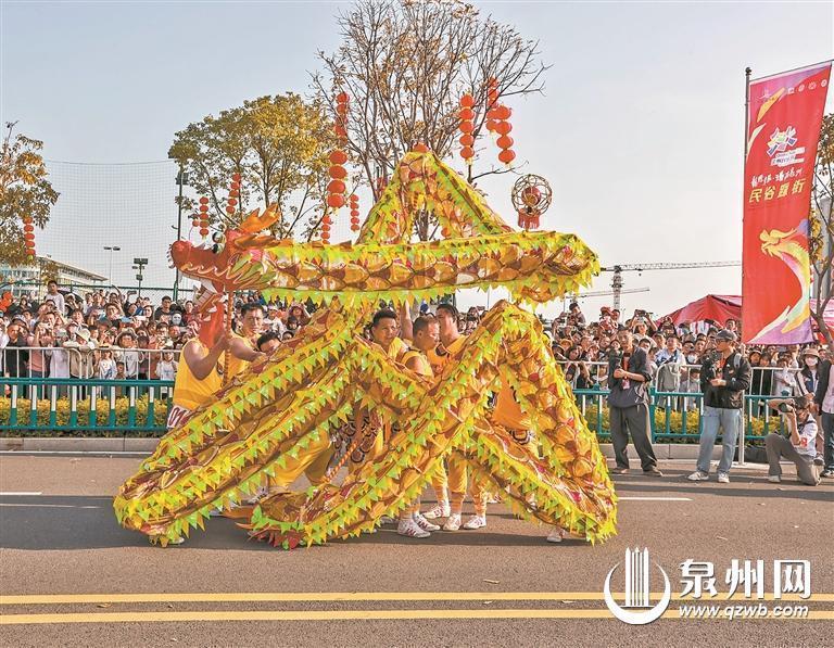 整个踩街活动如浓墨重彩绘就的长篇史诗,由“瑞龙呈祥迎春来”“市井十洲人·涨海万国商”“千家管弦鸣·烟火半城仙”“泉南英雄气·处处少林风”“多元文化城·泉州破天荒”“祥龙迎春到·泉州再腾飞”等6个部分组成。