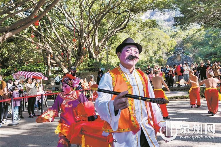 非遗表演进清源山景区,亮相老君岩前。(龚橡帅 摄)