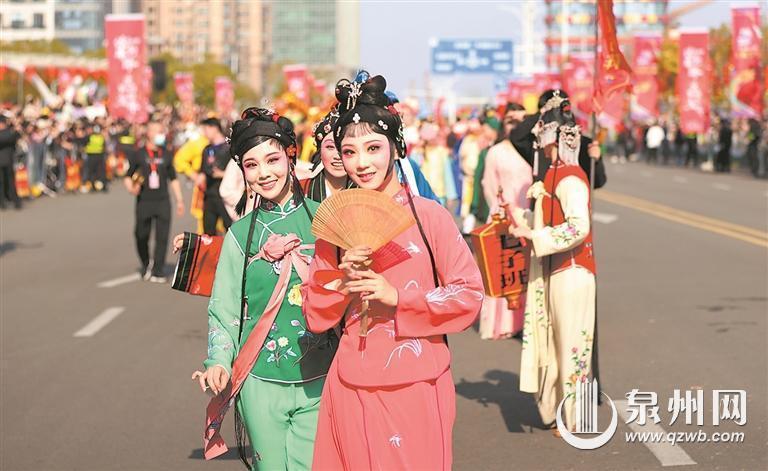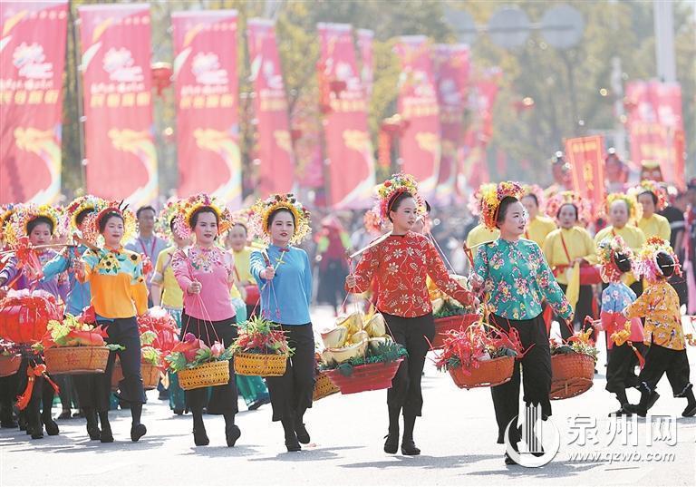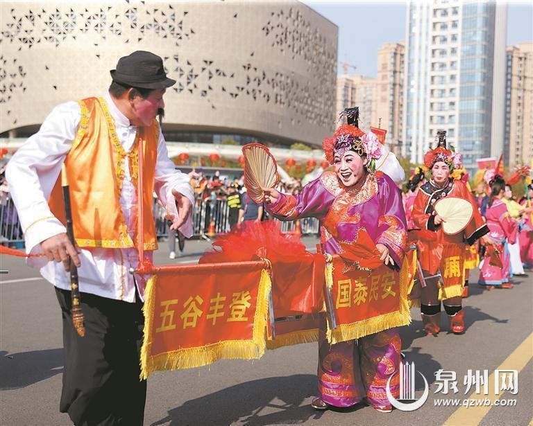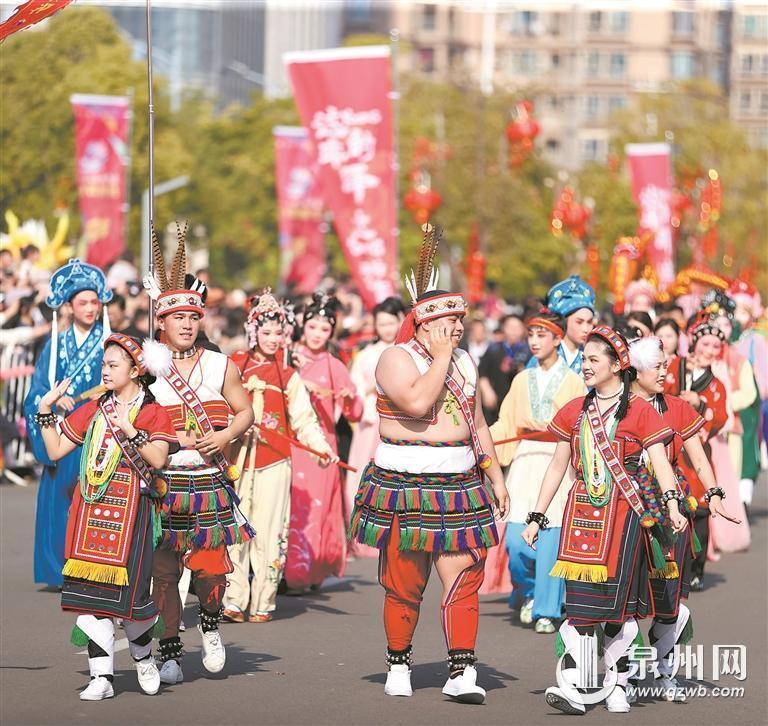 用文艺庆祝发展成就——此次民俗踩街,泉州以发展文旅、传承宝贵非遗的决心和态度,精选各县(市、区)各具特色的非遗项目,特邀台湾民俗同台表演,活动内容丰富、形式多样、特色鲜明。30个方阵共1500名演职人员以长达3小时的行进时间,展演、展示30项非遗项目,载歌载舞庆丰年,欢声笑语展风采。
